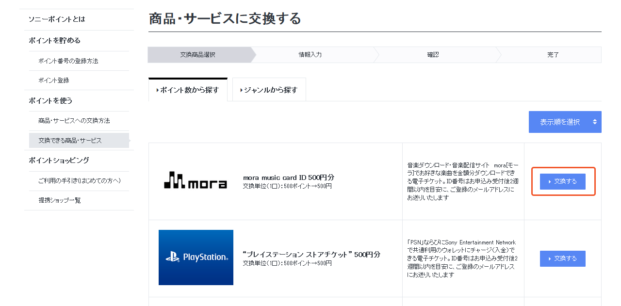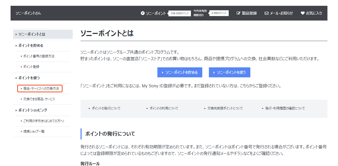商品やサービスへの交換方法 ポイントを使う ソニーポイント My Sony ソニー